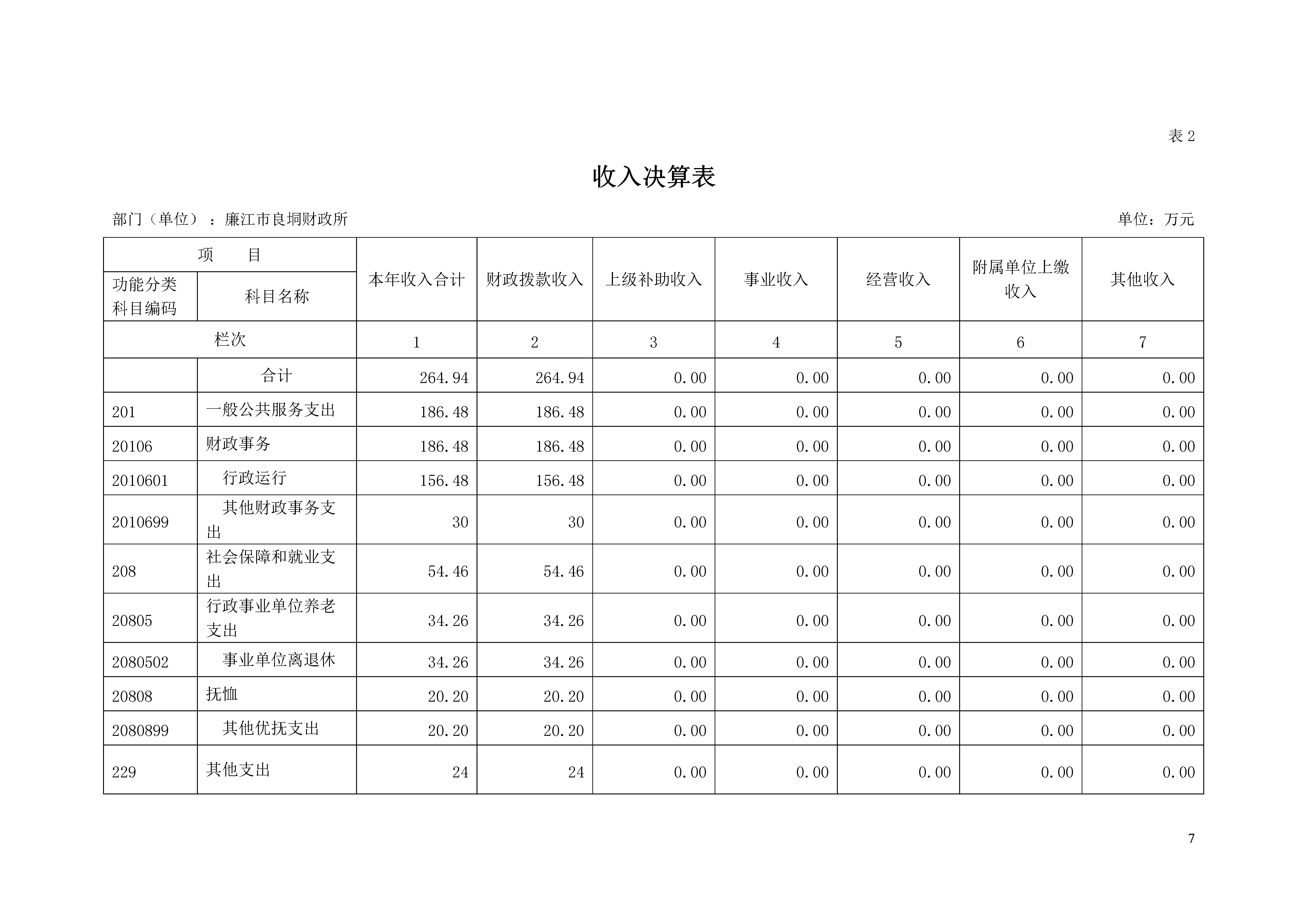 7.附属单位上缴收入0 万元,与上年决算数持平。