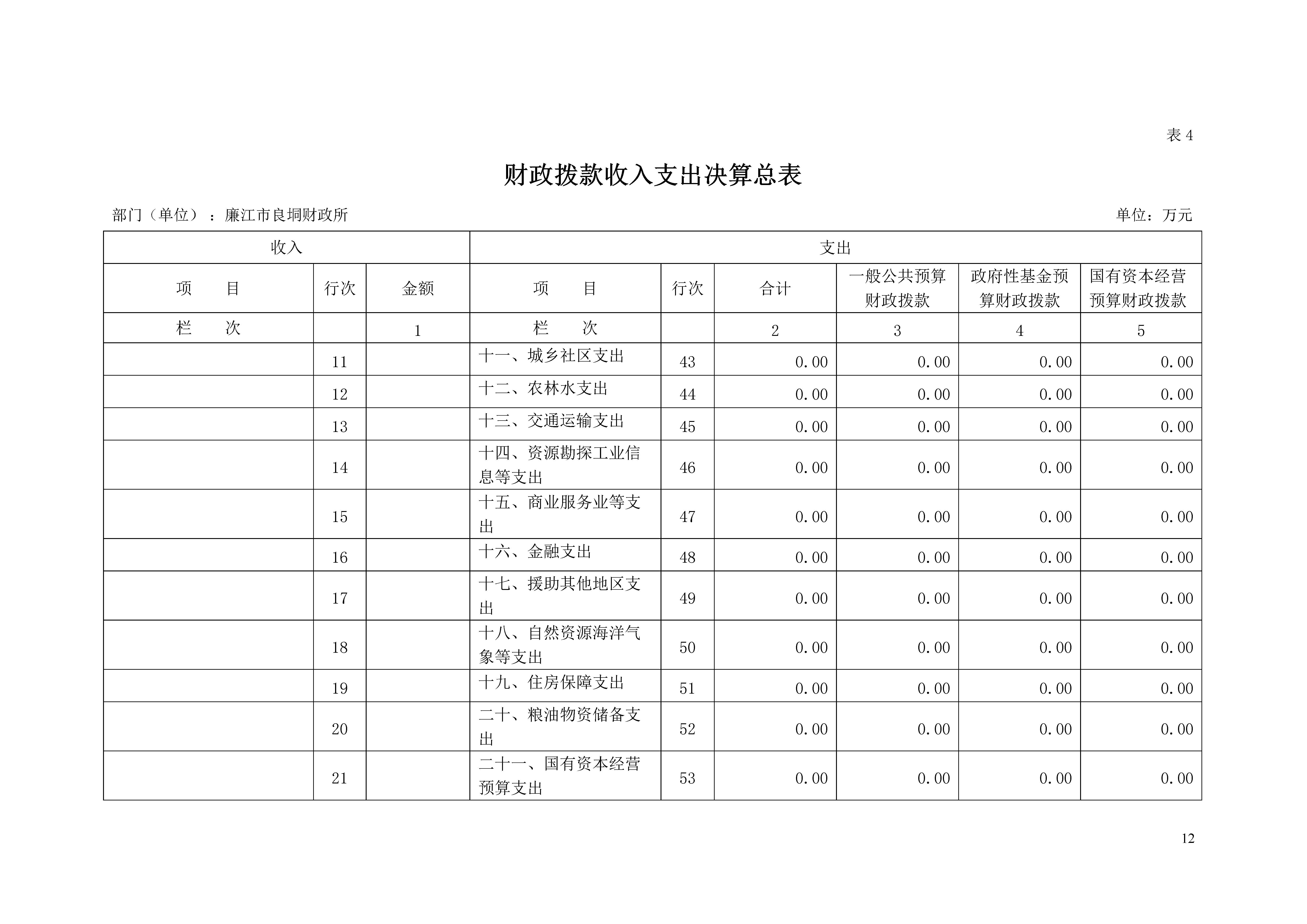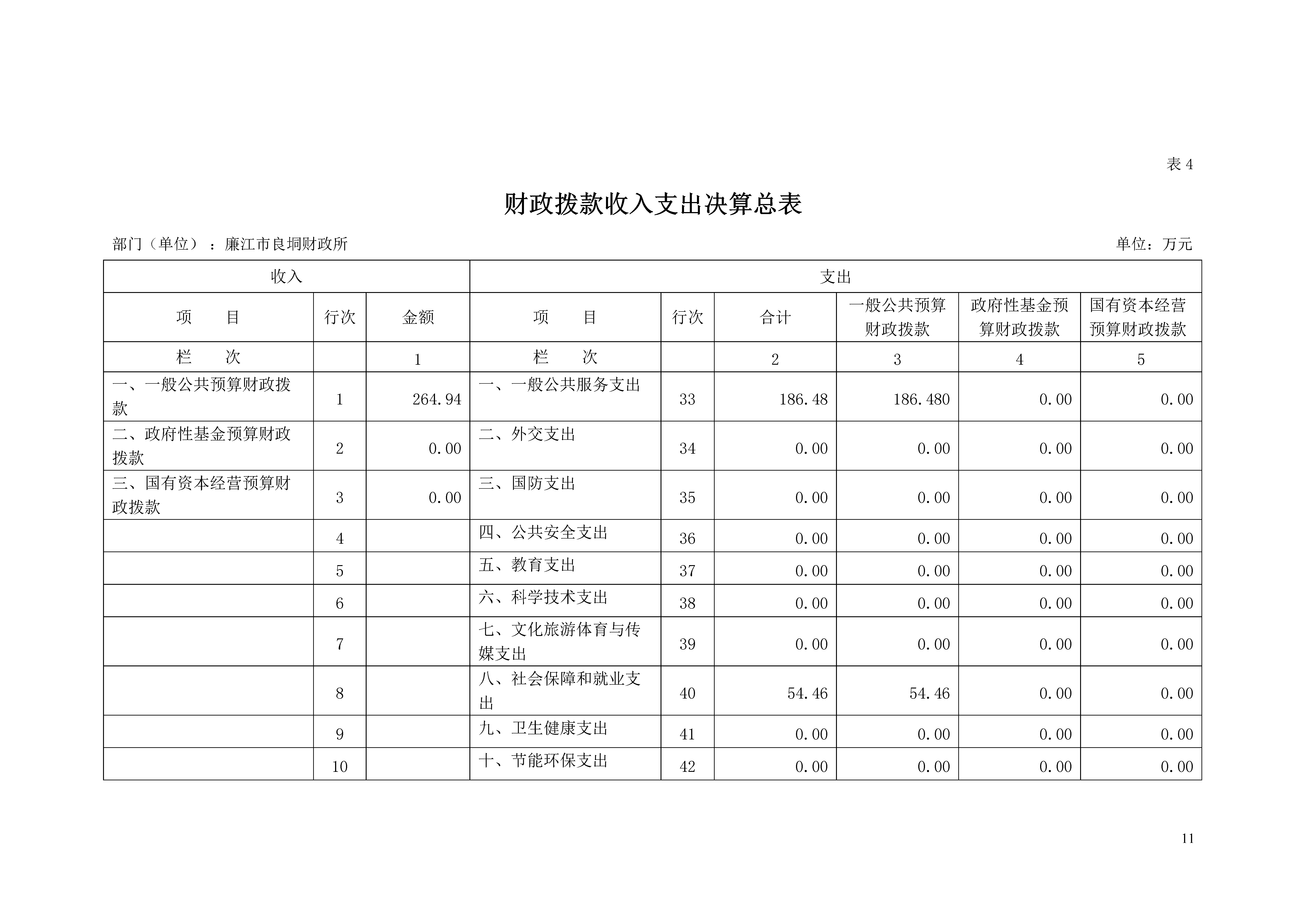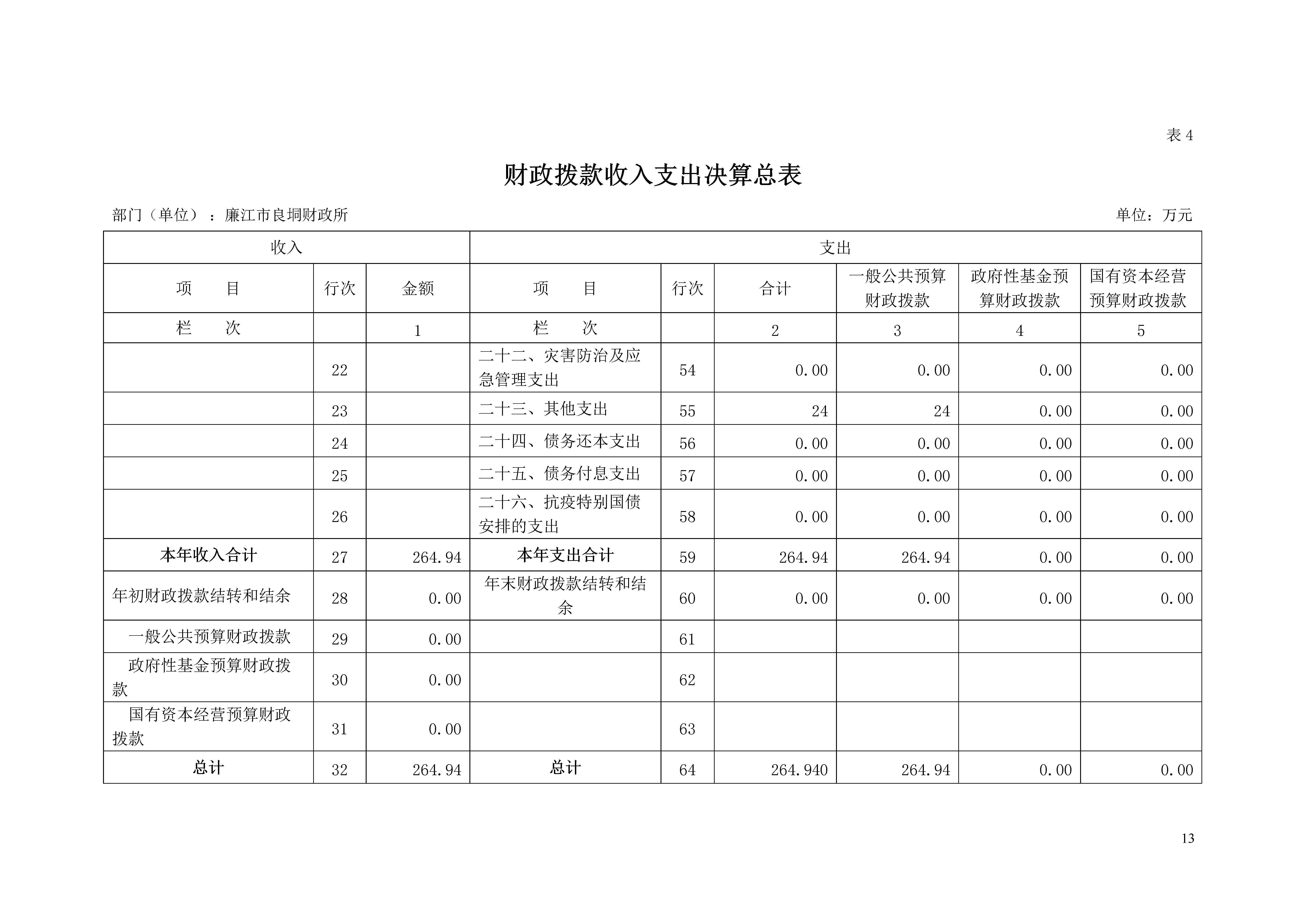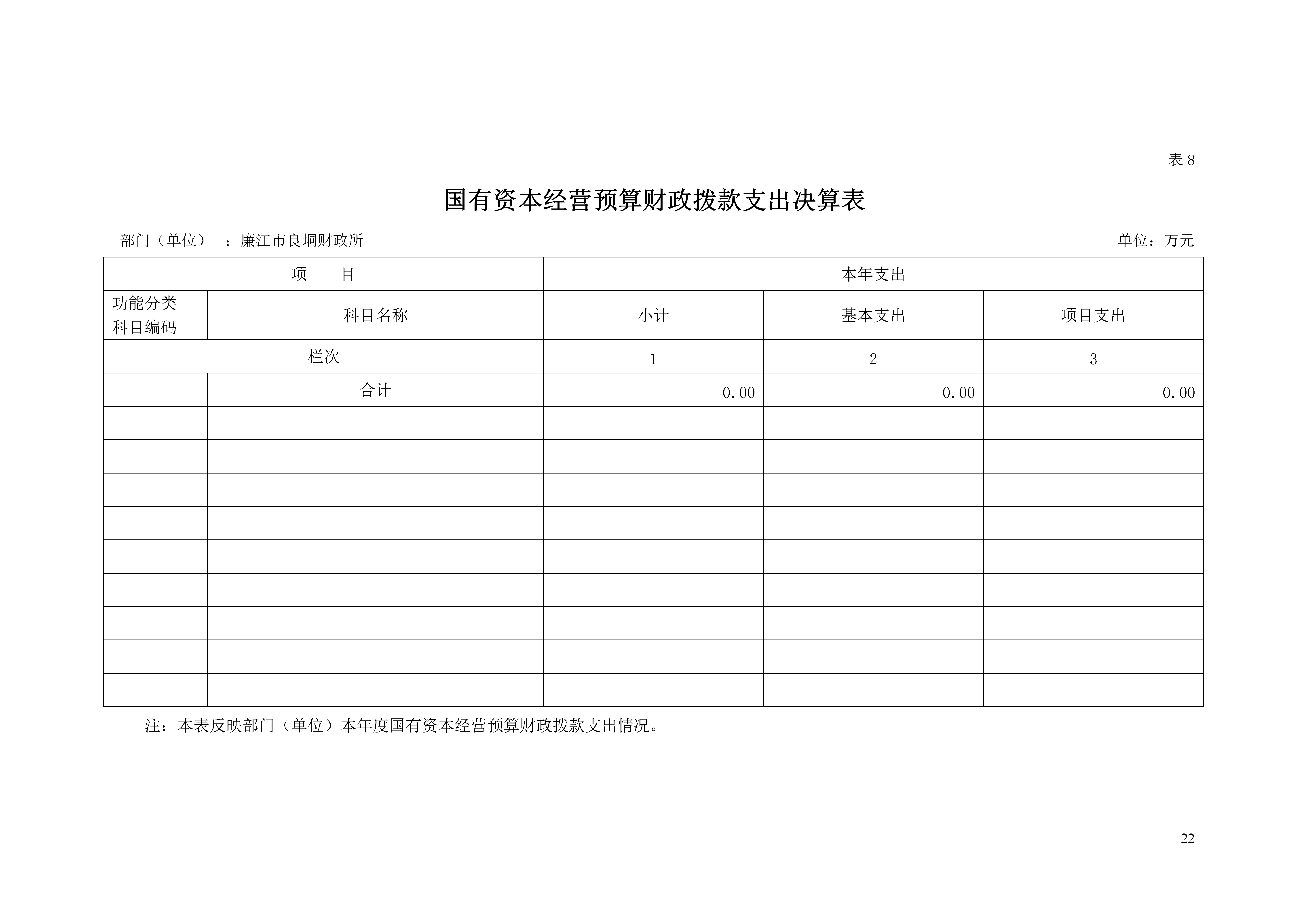 注:本表反映部门(单位)本年度一般公共预算财政拨款、政府性基金预算财政拨款和国有资本经营预算财政拨款的总收支和年末结转结余情况。