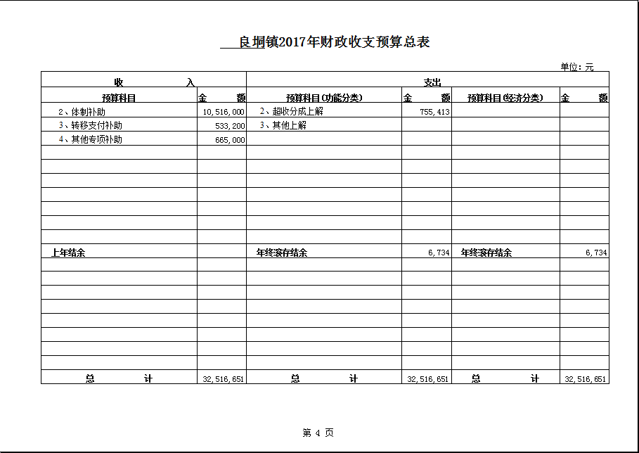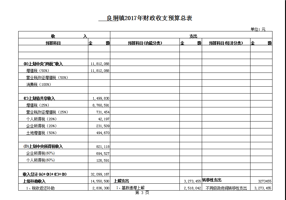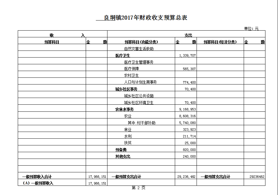 良垌镇2017镇政府预算