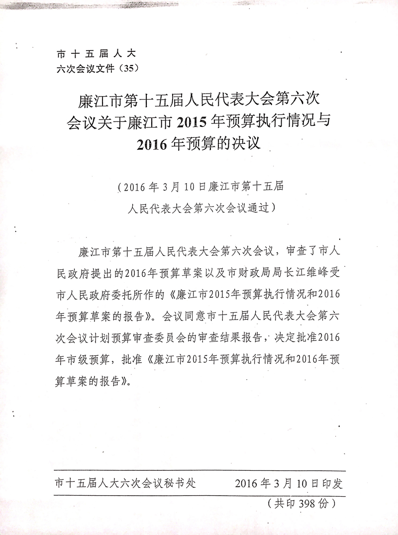 23、99贵宾会官网 第十五届人民代表大会第六次会议关于99贵宾会官网 2015年预算执行情况与2016年预算的决议.jpg